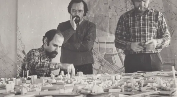 Сохранились фотографии той поры… бородатые мужчины склонились над листом топосъёмки и передвигают по ней кубики из пенопласта… это было, нынче забытое, рабочее макетирование.