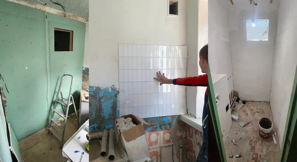 Ну, хоть черновые работы продвигались бодро и по плану! Ребята отштукатурили стены, закрыли коробом стояк и нишу для инсталляции, поменяли трубы и всю электрику. Мы вышли на этап чистовой отделки!