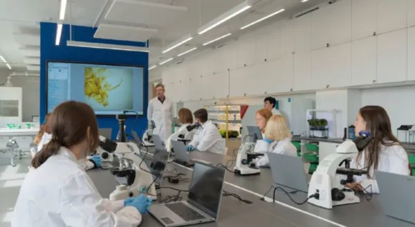 В одной из школ застройщик оборудовал класс IT-полигона с передовыми технологиями для работы с компьютерным зрением. В центре класса находится большая полетная зона, где ученики могут прокачать свои навыки в разработке и управлении роботами. В другой школе появился класс биотехнологий с VR-оборудованием, цифровыми микроскопами и программируемой камерой для проращивания растений.