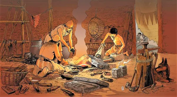 Также для изготовления бронзовых изделий могли использоваться запасы бронзы, сохранившиеся со времён более древнего государства. Стальные изделия, точнее остатки коррозии стальных изделий, более древнего государства на протяжении тысячелетий сохраниться могли только крайне редко в исключительных условиях.