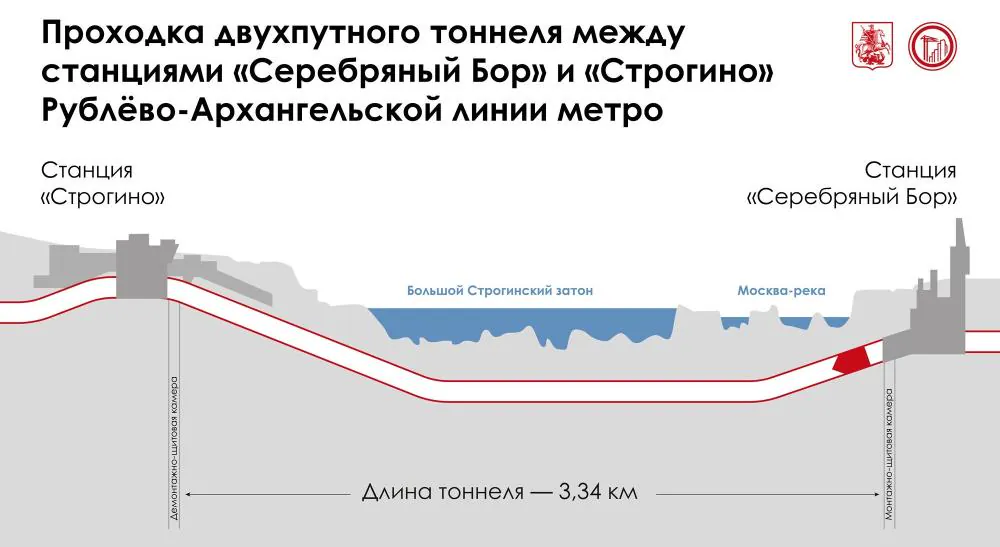 Строительство уже стартовало. Речь идёт про большой (диаметром 10 метров) двухпутный тоннель между станциями «Серебряный Бор» и «Строгино», который станет самым протяжённым тоннелем московского метро, проходящим под водоёмами.