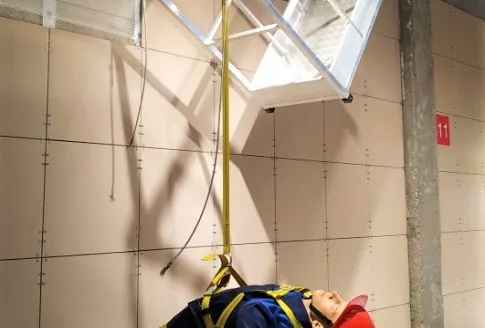 Например, добавлены недостающие ограждения, безопасная сумка с инструментом, аптечки и огнетушители, закреплён нижний трос на подъёмнике, натянуты страховочные стропа, страховочные карабины закреплены в местах исключающих удары работников при падении и самое главное – правильно установлена страховочная система, позволяющая спастись работникам даже при полном обрыве фасадной люльки.