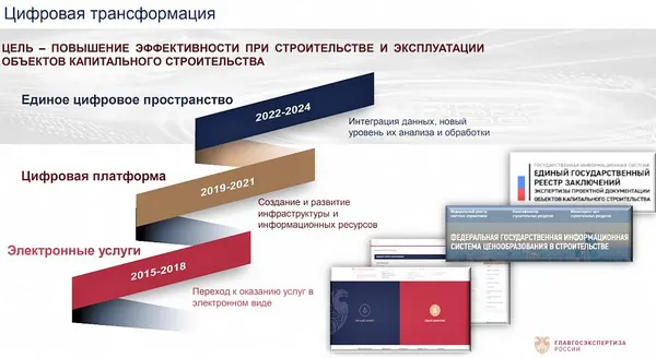 Выступая на недавней III Международной конференции «Развитие института государственной экспертизы», руководитель Центра цифровой трансформации рассказала про планы по цифровизации деятельности не только непосредственно Главгосэкспертизы, но и про эффект, который ожидается от такого внедрения для всего экспертного сообщества. Она подчеркнула, что есть существенная разница между автоматизацией и цифровой трансформацией: автоматизация – это, по сути, текущие процессы, то есть перевод всего массива накопленной информации в электронный вид. Что же касается цифровой трансформации, то здесь задействованы уже более глубинные процессы, поэтому необходимо серьёзное переосмысление. «Нам нужно изменить взгляд на саму проблему, чтобы её решить. А это неизбежно приведёт к перестройке всех процессов», – подчеркнула Виктория Валерьевна. При этом, по её мнению, трансформация должна привести к оптимизации временных и ресурсных затрат.