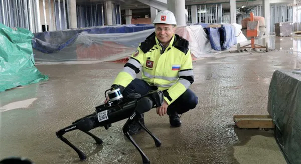 Также на площадке используется роботизированные системы: первый российский серийный дронопорт Hive, который выявляет нарушения техники безопасности, проводит фото- и видеофиксацию выполненных работ, а также лазерное сканирование с воздуха. На площадке проходит тестирование промышленного робота-собаки. Он оснащён лидаром – инструментом для лазерного сканирования, с его помощью можно оперативно получить точные обмеры и объемы помещений. Полученные данные используются для создания точной 3D-модели здания, которая является основной для формирования цифрового двойника возводимого объекта.