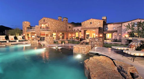 Здание скорее напоминает султанские хоромы, чем жилой дом. Здесь всё выполнено в стиле роскоши, каждая комната и каждый предмет мебели словно демонстрируют статус хозяина. В доме 10 комнат для гостей и 6 спален. Кроме этого, есть большой бассейн, джакузи, комнаты для сеансов массажа и кинозал.