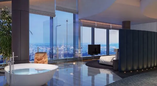 За 1 миллиард 435 миллионов рублей продаётся трёхуровневый пентхаус на 508 квадратных метров, с отделкой в стиле Ар Деко, в одной из башен гостиницы. Как и в предыдущем случае, цена на пентхаус снизилась. Здесь хозяева сбросили сразу $1 миллион. Но покупатели, пока, всё ещё размышляют.