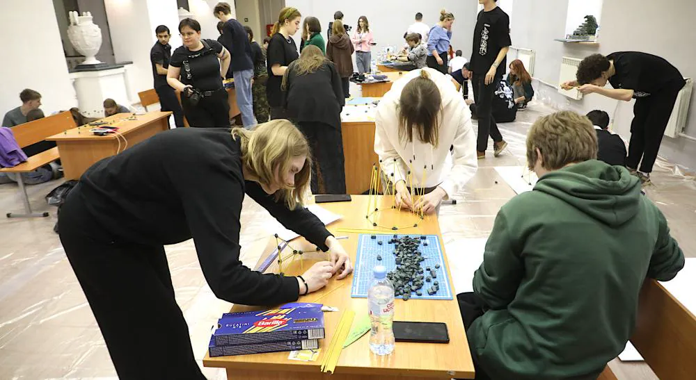 Четыре команды учеников строительных классов школ № 69 Калининского района, № 246 и № 106 Приморского района, а также № 87 Петроградского района Культурной столицы приняли участие в Международном конкурсе Санкт-Петербургского архитектурно-строительного университета (СПбГАСУ) «Макаронный строитель – 2025».