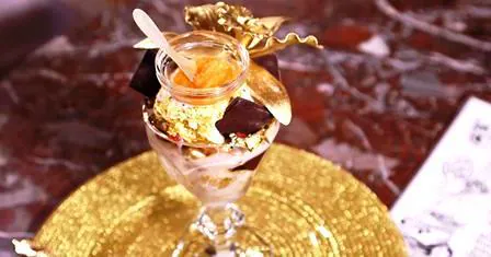 Это довольно интересный и вкусный десерт, если, конечно, Вы отважитесь потратить на него столько денег. Здесь не много не мало 28 видов какао-бобов, большая часть которых – наивысшего качества, и очень много золота, которое можно есть. Подача сандея восхищает: Вам приносят красивый кубок, где и находится десерт. Если Вы удачливы, то найдёте на дне кубка золотой 18-каратный браслет, который можно унести с собой. Кстати, то же самое можно сделать с золотой ложкой: она идёт к блюду.