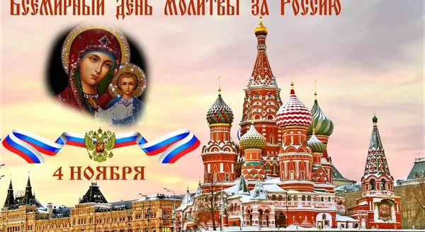 Более четырёх веков тому назад, в 1612 году бойцы народного ополчения под предводительством Кузьмы Минина и Дмитрия Пожарского освободили Москву, а с нею и всю Россию от польских интервентов. Князь Пожарский вступил в Китай-город с Казанской иконой Божьей Матери и поклялся построить храм в память этой победы. Поэтому 4 ноября отмечается и День Казанской иконы Божией Матери, защитницы и покровительницы государства Российского.