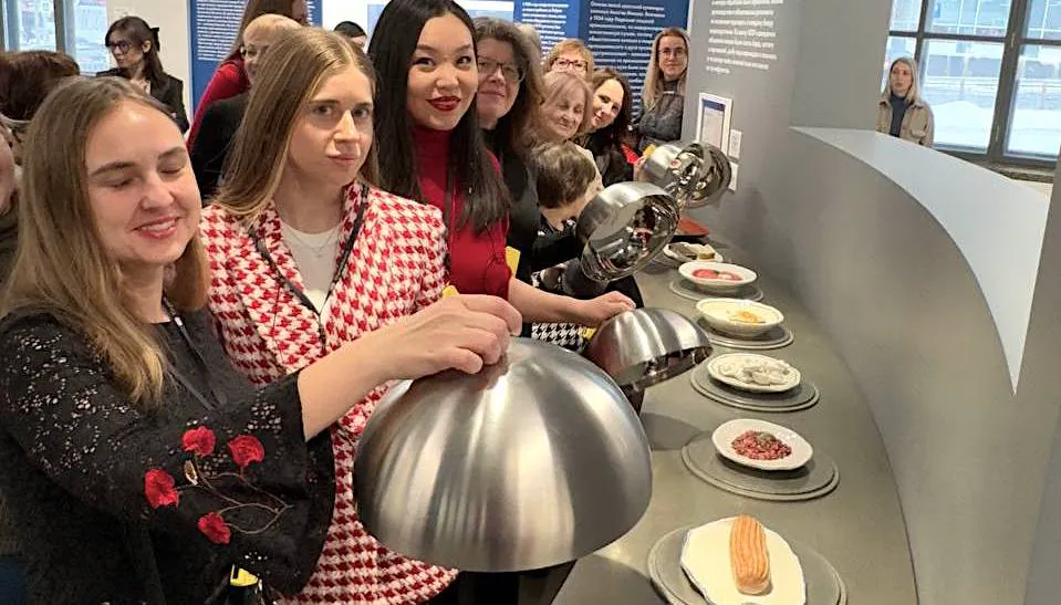 В тот день для гостей была организована насыщенная культурная программа. Прежде всего, они ближе познакомились с первоначальным назначением того строения, где организован филиал Третьяковской галереи. Фабрики-кухни – это венец системы советского общественного питания 1920-х годов. Они должны были продемонстрировать советским гражданам идеальный образ коммунистического будущего: изобилие длинных линий раздач, стерильную чистоту кухонь, гул машин и хор тысяч голосов посетителей просторных обеденных залов.
