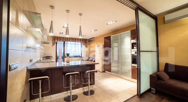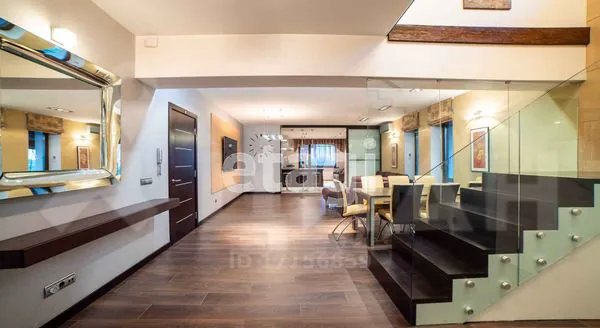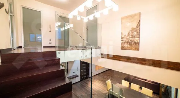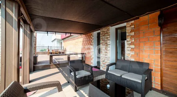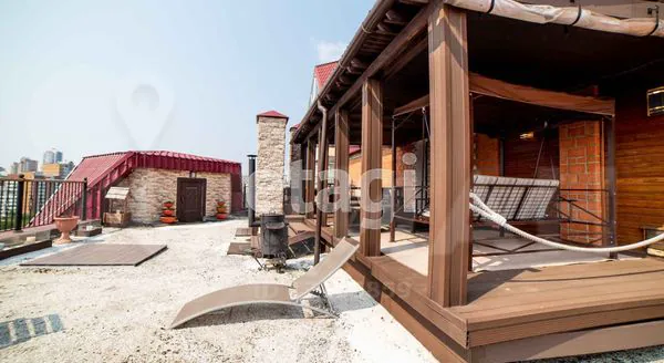 Квартира занимает 8-й и 9-й этажи. Три полноценных больших раздельных спальни. Спортзал. Огромная гостиная с зоной отдыха. Два раздельных санузла в кафеле, тёплые полы. Одна застеклённая лоджия на кухне. Два застеклённых балкона (в спальне и спортзале). Окна выходят на 3 стороны (восток, юг, запад). Квартира меблирована дорогой немецкой мебелью ROLFBENZ. Собственная терраса с зоной отдыха, барбекю, собственный бассейн, SPA зона, шезлонги, качели и так далее, и тому подобное... В стоимость входит два парковочных места на крытой стоянке, сигнализация, видео наблюдение, охрана, консьерж.