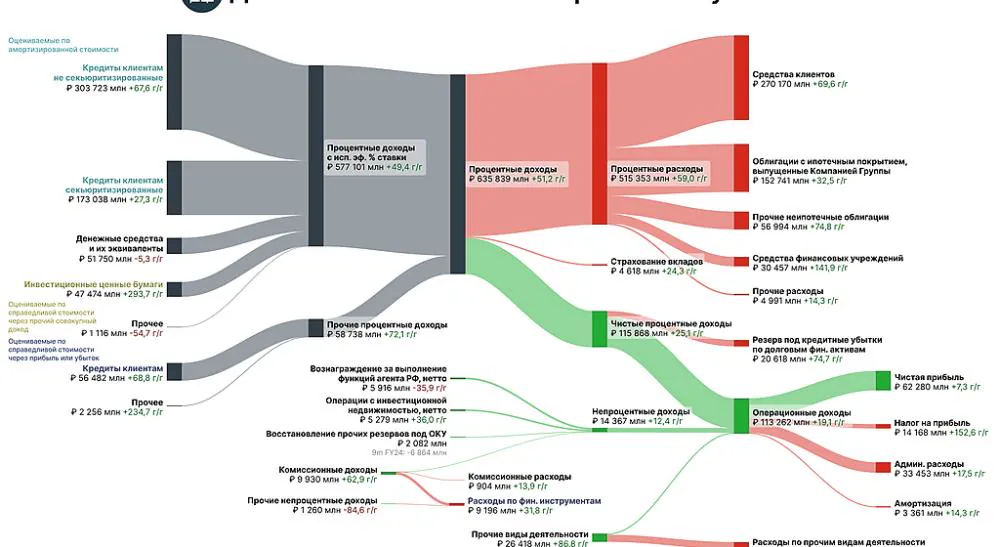 В рамках первичного размещения акций (IPO) компания привлекла 31,7 миллиарда рублей. На момент начала торгов доля акций в свободном обращении составила около 10,1%. Благодаря рыночным механизмам, была установлена и капитализации компании, которая составила порядка 280 миллиардов рублей – по этому параметру «ДОМ.РФ» оказался пятым российским банком, между «Совкомбанком» и МКБ. Для понимания масштабов – капитализация лидеров отрасли Сбербанка и ВТБ составляет, соответственно, 6.888 миллиардов и 933 миллиарда рублей. Привлечённые в ходе IPO средства эмитент планирует направить на реализацию стратегии дальнейшего роста и развития бизнеса компании.