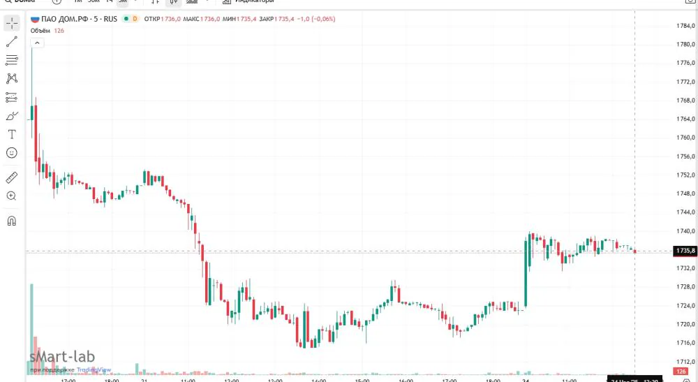 Начало продаж стартовало 20 ноября сего года, ценным бумагам был присвоен тикет DOMRF. Размещение прошло по верхней границе диапазона – 1.750 рублей за акцию, постепенно стоимость бумаг уменьшилась до 1.735 рублей и зависла в горизонтальном боковике, не вызвав особого ажиотажа среди инвесторов.