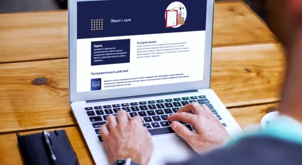 Материал составлен на примере смоделированной ситуации, в которой перед условным застройщиком поставлена задача: произвести строительство дополнительного учебного корпуса, оснащённого современной тренажёрной базой, на территории высшего учебного заведения. При этом финансирование объекта предполагается за счёт средств федерального бюджета, а ответственность за строительство возложена на ректора вуза.