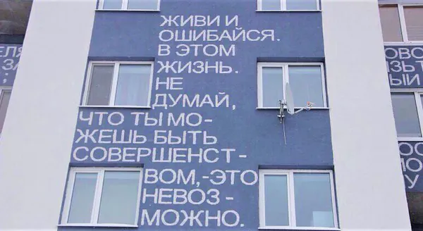 Немного не в тему, но надписи на доме зачетные. Очень интересное арт-решение. И полезное. В общем прям +100500)))