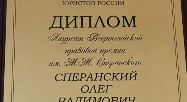 Директор правового департамента Министерства строительства и жилищно-коммунального хозяйства РФ, член Совета Национального объединения строителей и Совета Национального объединения изыскателей и проектировщиков Олег Сперанский получил Всероссийскую правовую премию имени М. М. Сперанского, присуждаемую за заслуги в развитии законодательства. Решение о премии принято Президиумом Ассоциации юристов России, которую возглавляет Сергей Степашин.