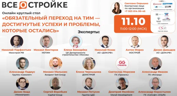 На прошлой неделе на YouTube-канале «Всё о стройке» состоялся круглый стол на тему «Обязательный переход на ТИМ – достигнутые успехи и проблемы, которые остались». В рамках встречи участники обсуждали широкий спектр вопросов по информационному моделированию в строительстве при участии глав профессиональных объединений и представителей девелоперских компаний, непосредственно работающих «в полях».