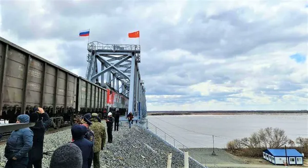 Однопутный мост с совмещённой колеей российского и китайского стандартов расположен на переходе