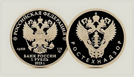 В процессе чеканки была применена технология «proof», которая позволяет создавать монеты, отличающиеся тонкостью и изяществом рельефных элементов. На аверсе размещён рельефный геральдический знак – эмблема Федеральной службы по экологическому, технологическому и атомному надзору, внизу по окружности размещена надпись: «РОСТЕХНАДЗОР».