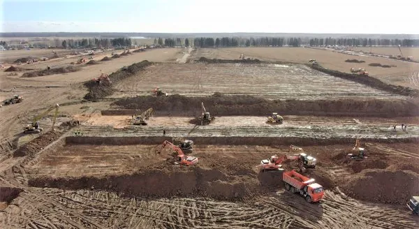 По его словам, в настоящее время проводятся подготовительные работы: «Мы прорываемся к основному месту строительства, которое занимает площадь 43 гектара. Сейчас задействовано около 500 единиц техники, более двух тысяч человек сейчас находятся на работах по подготовке территории».