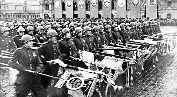 И самая важная цифра – во время первого Парада Победы к подножию Мавзолея под бой 80-ти барабанов были брошены 200 знамен и штандартов разгромленных фашистских войск.