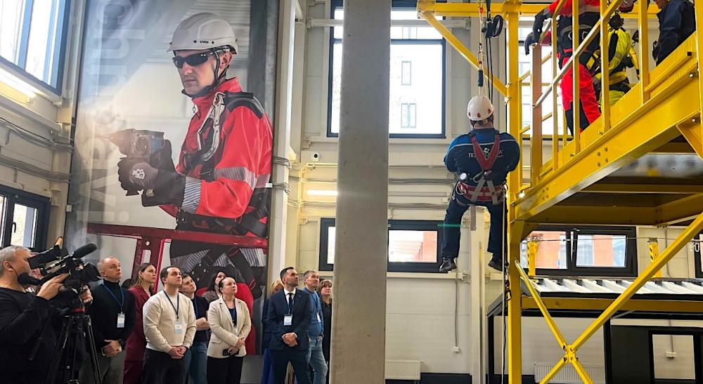 А спустя всего пять дней, 21 октября состоялась презентация учебного полигона по работам на высоте учебного центра «ТехЭнерго». Учебный центр был основан в 2021 году и стал площадкой для обучения и отработки профессиональных компетенций работников на высоком уровне, который соответствует современным требованиям законодательства в вопросах охраны труда.
