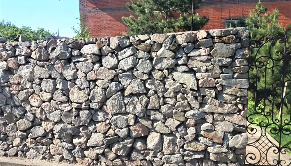 Для ограждений может использоваться валунный камень – осколки, обкатанные за время существования до гладкой округлой формы (мелкие валуны в обиходе называют булыжниками), а также доломит прямо из карьера.