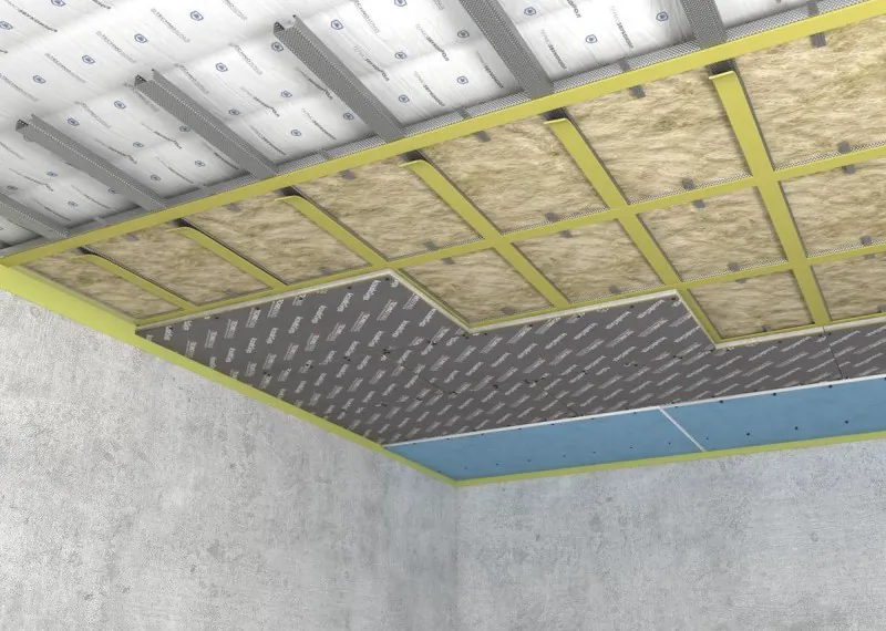 4. Различные слои звукоизоляции. Использование нескольких слоёв звукоизоляции помогает увеличить эффективность звукоизоляции потолка.