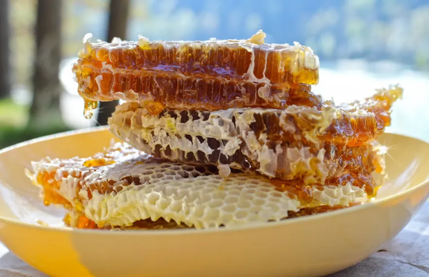 Он очень вкусный, имеет глубокий, насыщенный вкус, в котором угадываются нотки липы и луговых цветов. И иногда пасечник может предложить и сотовый мёд – очень ценный продукт, где мёд запечатан в сотах.