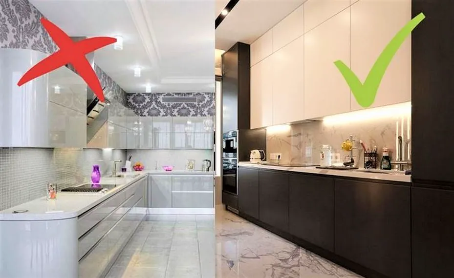 При разработке проекта кухонной зоны также рекомендуется придерживаться принципов практичности и функциональности. Светлые, а тем более белоснежные оттенки советуют использовать в спальнях и ванных комнатах. Место же, в котором происходит приготовление и употребление пищи не должно порождать страх что-то запачкать или повредить, поэтому сегодня зелёные, серые и даже чёрные кухни – это норма, продиктованная мировыми производителями.