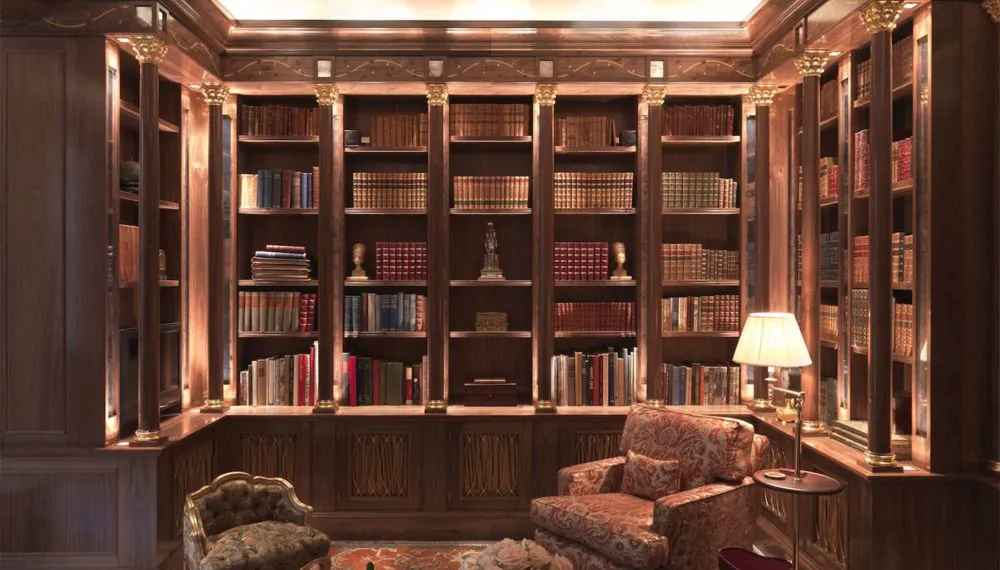 Если позволяет площадь, обязательно поставьте открытые книжные стеллажи и полки. Заполните их интересными изданиями – это сразу создаст «камерную библиотечную» атмосферу.