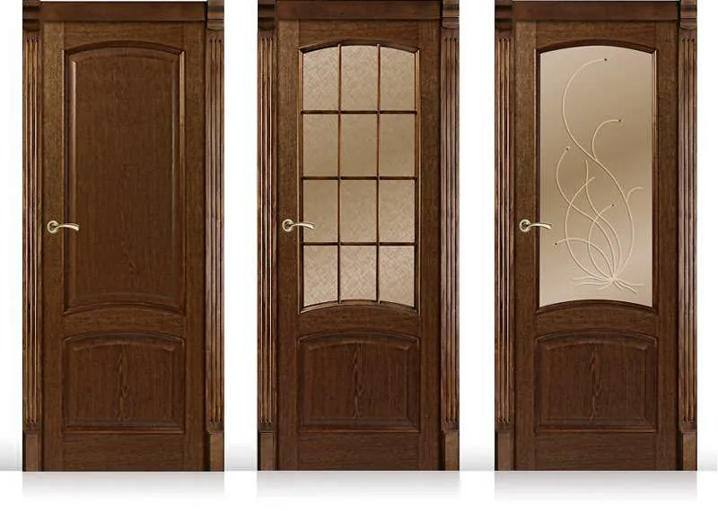 В жилых помещениях чаще всего используются двери, которые выполнены из массива натурального дерева. Это может быть цельное дерево или клееное дерево. Также может быть использован шпон, основой которого служит МДФ-панель, а иногда и пластик, который стоит намного дешевле.