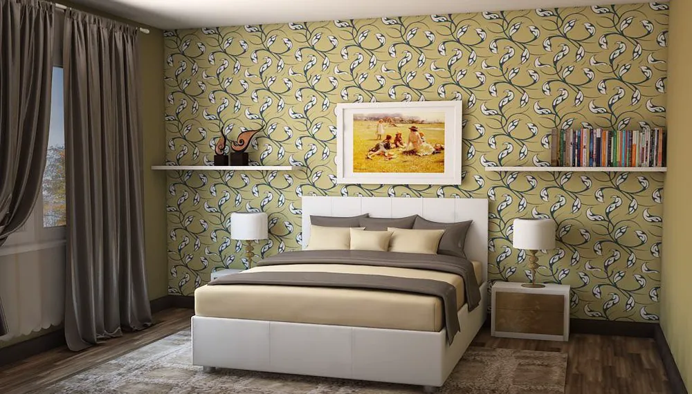 Орнамент. Растительные орнаменты на обоях в спальне уместны во многих стилевых решениях от прованса и шебби-шика до ретро и арт-деко. В классике последнего, впрочем, чаще можно увидеть строгие орнаменты из геометрических фигур.