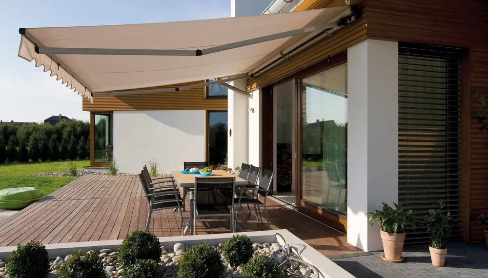 Навесы могут быть оснащены различным оборудованием, влияющим на удобство их использования. Одним из них является привод, особенно полезный для управления более крупными моделями, которыми сложно управлять вручную. Разматывать и сворачивать их с помощью пульта или настенного крепления однозначно удобнее. Электрические крыши могут быть дополнительно укомплектованы погодной автоматикой. Благодаря датчику ветра и солнца-ветра тент автоматически раскладывается и сворачивается – в зависимости от преобладающих погодных условий.