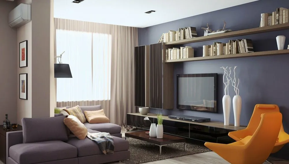 Важно учесть то, что вся специальная вентиляционная техника обязана быть мощной и при этом бесшумной – чтобы не препятствовать отдыху. К примеру, мощности вытяжки должно хватать, чтобы посторонние запахи не разносились по помещению и не впитывались в мягкую мебель, ковры, занавески. Также при оформлении гостиной всегда нужно помнить о пропорциях.