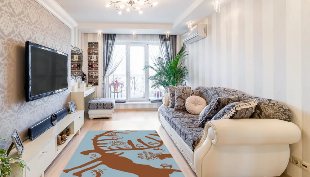 В гостиной должно быть уютно. Я вот давно уже отошел от обоев на стенах. Гораздо проще сделать все штукатуркой, смотрится отлично, особенно декоративная. На пол однозначно дерево, ну или паркет / ламинат и т.п. На него я положил большую шкуру, на которой сидеть очень тепло, иногда даже там лежу.