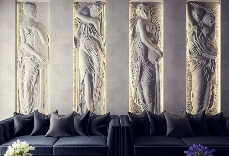 Один из видов объёмного настенного декора, а именно барельеф, в современном интерьере встречается всё чаще и чаще