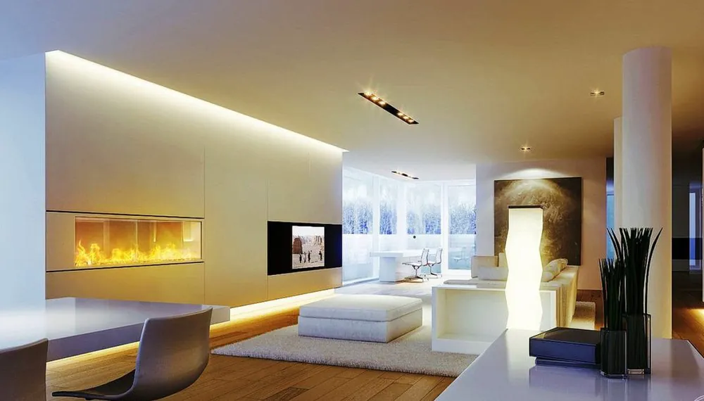 Традиционный светильник посередине потолка уходит в прошлое. Освещение связано с назначением интерьера, адаптированным к выполняемым в нем действиям, к изменяющемуся настроению. Один свет сопровождает во время еды, другой – при выполнении работы по дому и ещё один – при просмотре мультимедийных изображений. В некоторые телевизоры встроены специальные лампы для освещения фона, чтобы сбалансировать контраст между экраном и стеной.