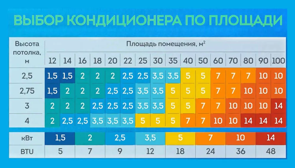 При выборе кондиционера также необходимо решить, для каких целей он будет вам служить. Современные кондиционеры могут оснащаться не только системами охлаждения воздуха, но также и подогрева, а в некоторых моделях и очистки воздуха. Немаловажной составляющей оптимального расчёта мощности является также количество проживающих в помещении людей. С учётом всех вышеперечисленных параметров, можно приступать непосредственно к выяснению необходимой для ваших условий мощности кондиционера.