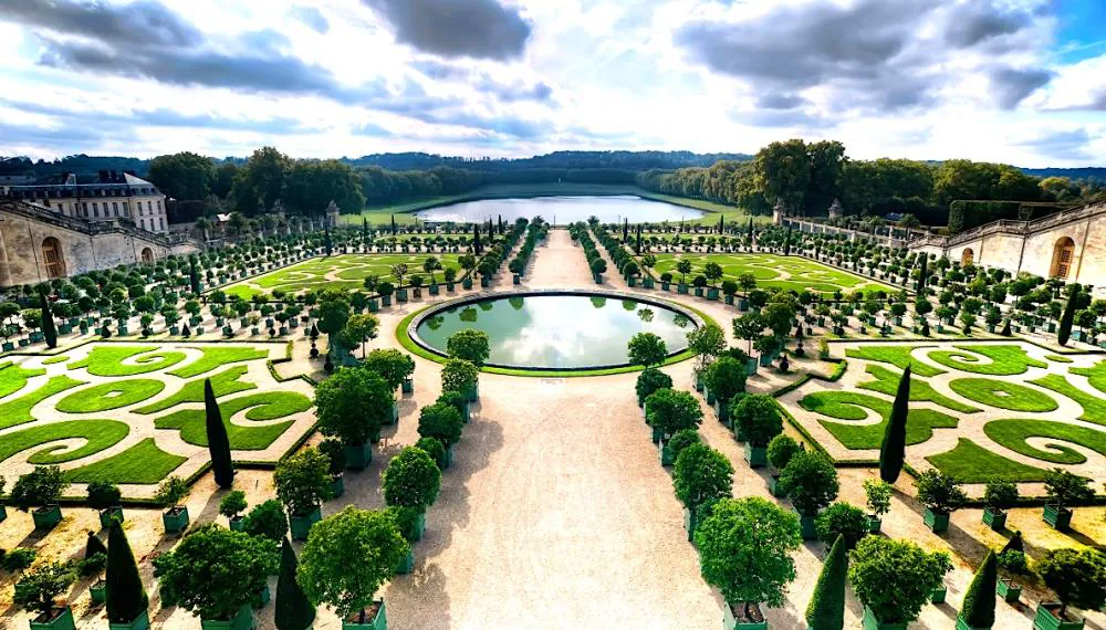Французский стиль родился в эпоху барокко и достиг расцвета при Людовике XIV. Версаль – его ярчайший пример, демонстрирующий главный принцип: природа должна подчиняться воле человека. Здесь всё подчинено геометрии – идеально ровные аллеи, стриженые кусты, симметричные клумбы и водоёмы правильной формы.