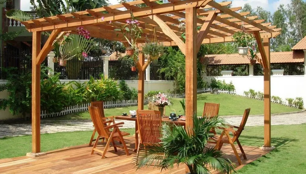 Эти тенеобразующие структуры также называют беседками, но наиболее точным названием является «пергола», которое происходит от слова «перугула». Пергола в основном состоит из колоннады – то есть ряда регулярно разложенных столбчатых колонн, соединённых поперечно расположенными балками, но без крыши или стен. Цель состояла в том, чтобы получить место для сидения, передающего ветер и свет, но в то же время защищающего от прямых лучей экваториального солнца. Выращивание вьющихся растений на перголе, увеличивало их архитектурную красоту и защиту от солнца.
