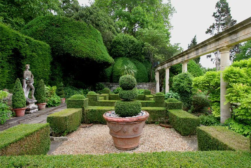 Лидеры среди кустарников – жимолость, жасмин, девичий виноград, шиповник, барбарис, сирень. Классический стиль редко обходится без хвойных пород деревьев. А вообще, при его реализации часто высаживаются липы; пирамидальные кипарисы, можжевельники, тополя; ели (в частности, голубые); шаровидные туи; клёны, вязы. Словом, растения должны наилучшим образом соответствовать понятию, которое принято называть «растительной архитектурой».