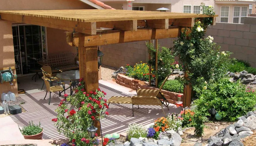 Специальные ограждения и экраны защитят площадку от ветра, перголы и декоративные навесы, которые будут увиты вьющимися растениями, создадут тень и помогут укрыться от жары.