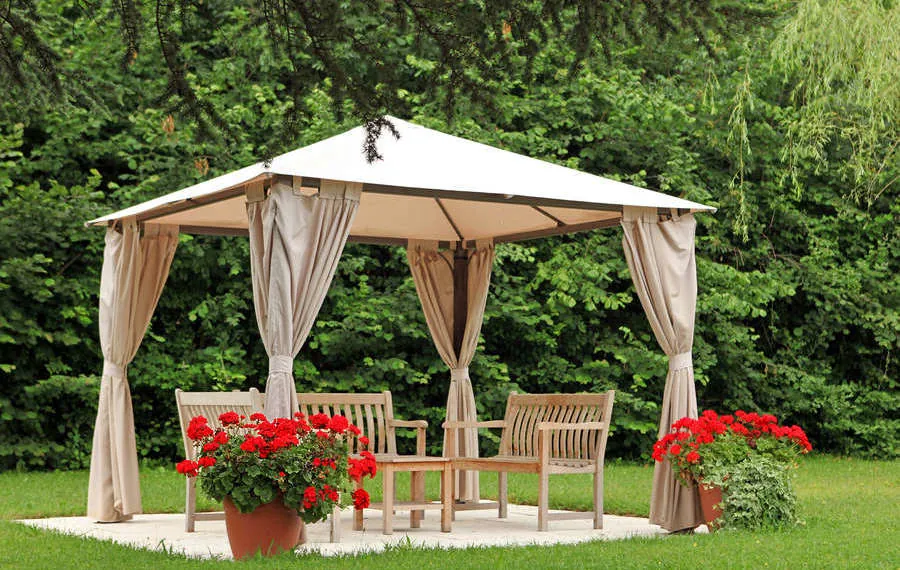 И палатка, и садовый павильон имеют схожее применение, сравнимое с беседкой, построенной в саду. Они выбираются в основном для защиты от неблагоприятных погодных условий – таких как холод, ветер, солнце и падающие листья. Пребывание в полузакрытом пространстве палатки также помогает справиться с инсектицидами, которые могут выгнать из сада даже самых больших любителей зелёного отдыха. Хотя эти термины иногда используются поочерёдно, мы считаем более крупную структуру или застеклённые здания павильоном, что является более долговечной инвестицией.