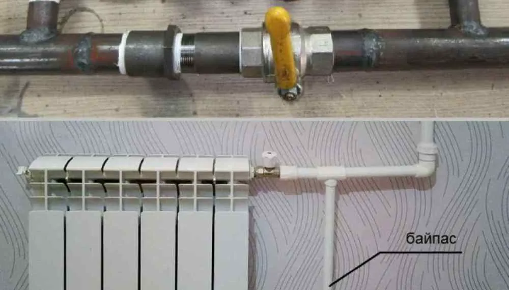 - Между байпасом и входным отверстием батареи монтируется вентиль для регулировки.