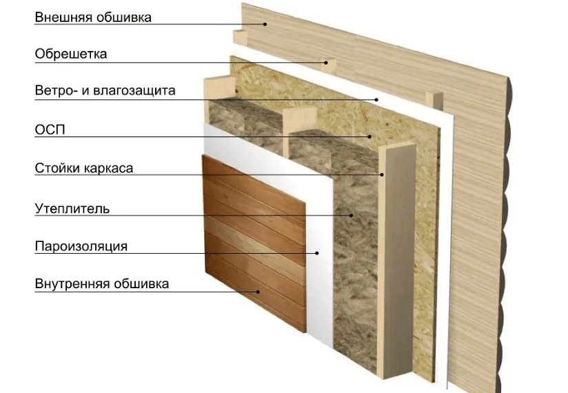 Незнакомый с особенностями строительства каркасных домов клиент радостно соглашается со своим благодетелем и начинает платить деньги ещё и за второй слой утеплителя, да ещё с обязательным разделением обеих слоёв плитой ДСП или толстой фанеры (чтобы обеспечить какой-то там «терморазрыв»). Такая конструкция, по идее строителей, способна вывести «точку росы» в вентиляционный зазор, пар, который выделяется из утеплителя, будет выпадать в воду за пределами стены, и утеплитель якобы не будет намокать. При этом внешний изоляционный слой нужно делать не с помощью обычной паронепроницаемой плёнки, а специальной мембраны, которая будет пропускать влагу только в одну сторону – наружу. Но таким образом непонятно, зачем тогда изолировать стену изнутри, хотя, впрочем, многие будущие домовладельцы над этим и не задумываются вовсе.