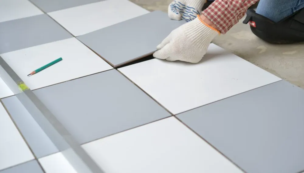 Процесс укладки плитки