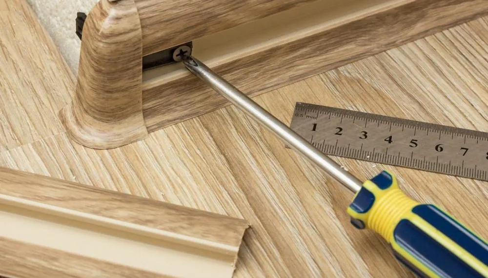 Этот способ обеспечивает прочность и позволяет легко демонтировать плинтус при необходимости. Однако его использование требует предварительной подготовки: разметки и сверления отверстий. Этот вариант часто применяют для деревянных и МДФ-моделей. Для пластиковых изделий иногда используют специальные крепёжные клипсы, которые обеспечивают удобство монтажа и позволяют скрыть крепёжные элементы.