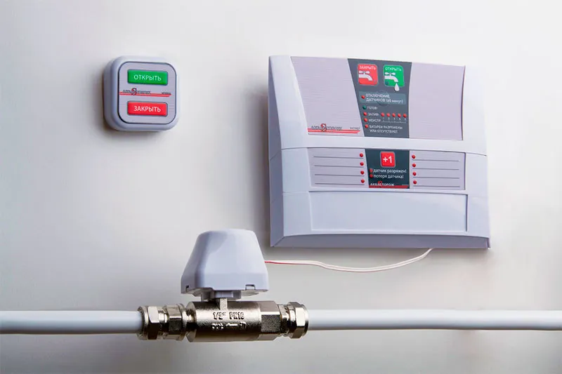 При попадании на них воды датчики сообщают об этом контроллеру, который даёт команду электромагнитному клапану перекрыть подачу воды в помещение.
