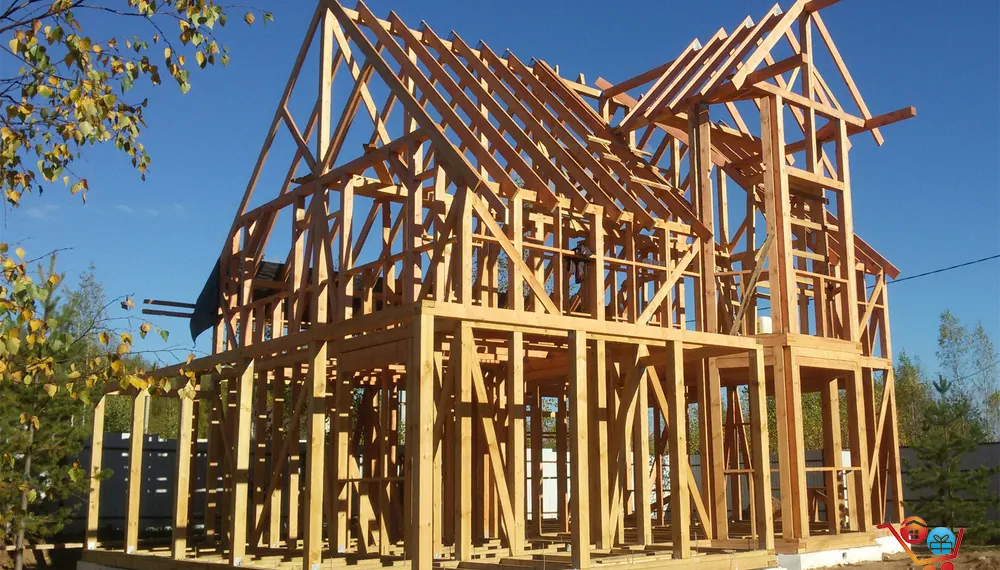 Потом формируют основание для каркасного дома из деревянных брусьев и ферм. Они используются как лаги при устройстве пола. Основание (обвязка) из бруса может делаться в один или два ряда, двухрядное более долговечно.